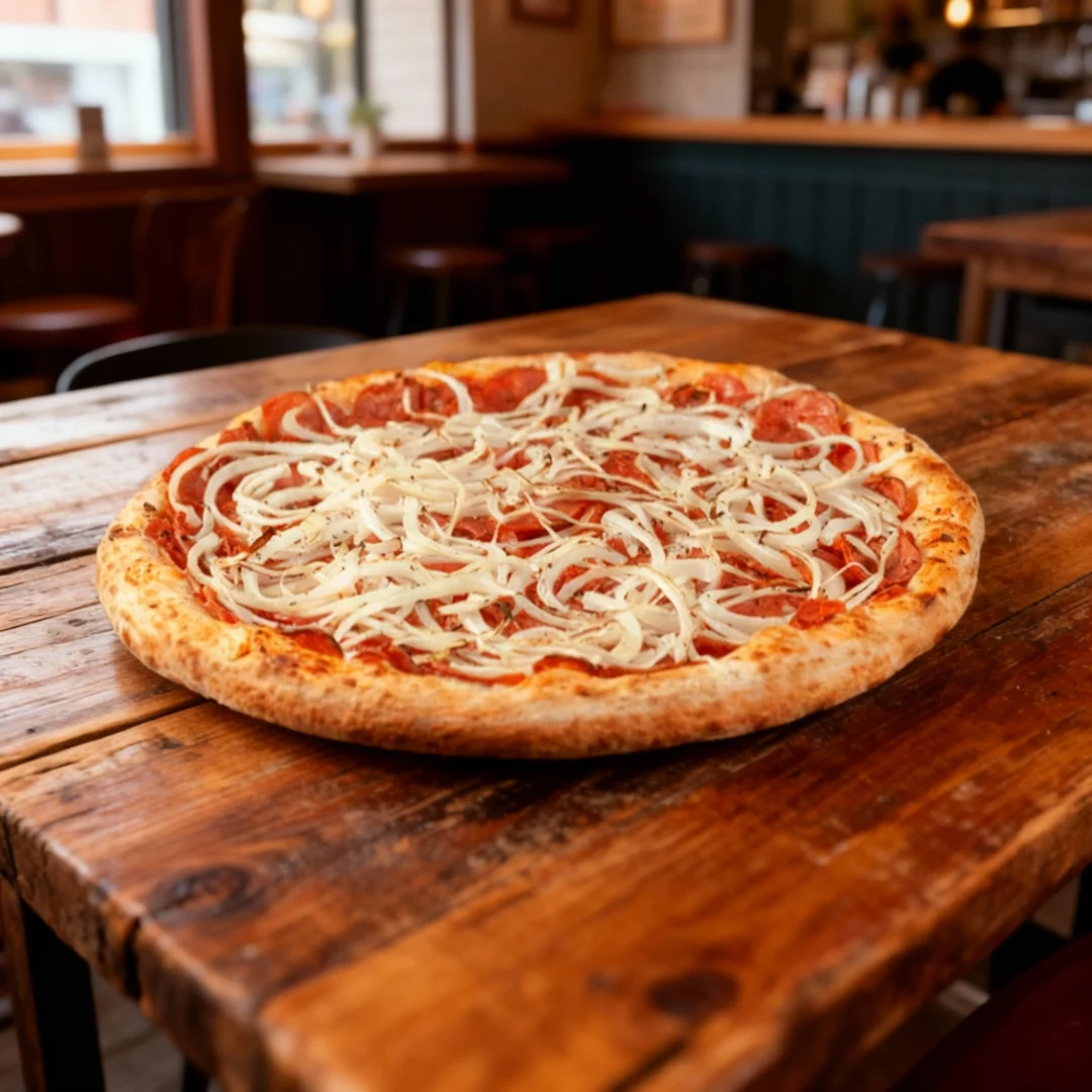 Pizza gigante 12 fatias, até 4 sabores tradicionais, com borda + pizza doce 4 fatias + Refrigerante.