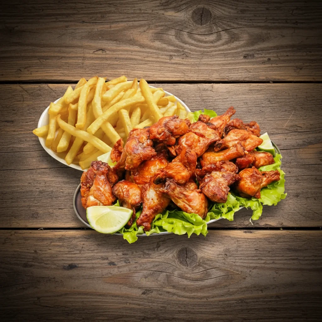 Com: tomate e cebola.acompanha: pão, batata frita e farofa.